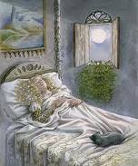 A velha era na verdade Malévola. Num passo de mágica, a ex-fada foi embora dando uma grande gargalhada. Os pais da princesa chegaram uma hora depois. Ficaram chocados. E se puseram a chorar. Colocaram a menina deitada em seu quarto. De repente, todos começaram a dormir. Os monarcas, os cozinheiros, os trovadores, as camareiras, guardas, todos do castelo. Até o fogo parou de queimar, o vento parou de assoviar. Tudo num grande silêncio.